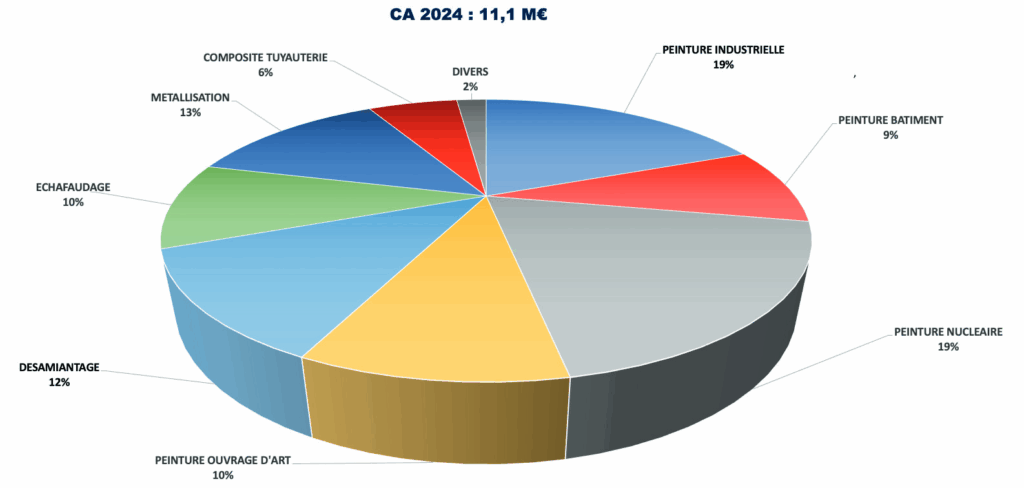 Le graphique ci-contre présente la répartition de nos revenus par pôles d’activité, offrant une lecture claire de notre structure financière. Ce découpage illustre non seulement la diversité de nos prestations, mais aussi leur complémentarité, qui constitue un véritable atout pour la pérennité de notre entreprise.